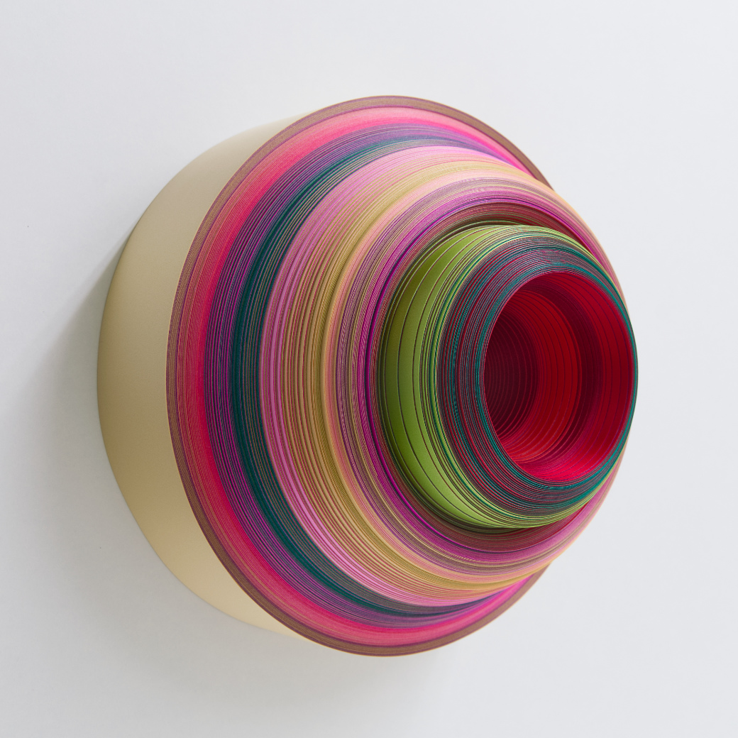 Coil_2023_07_26_02 (Gold), 2023. Polypropylenbänder gewickelt, Ø 191 mm, h 120 mm