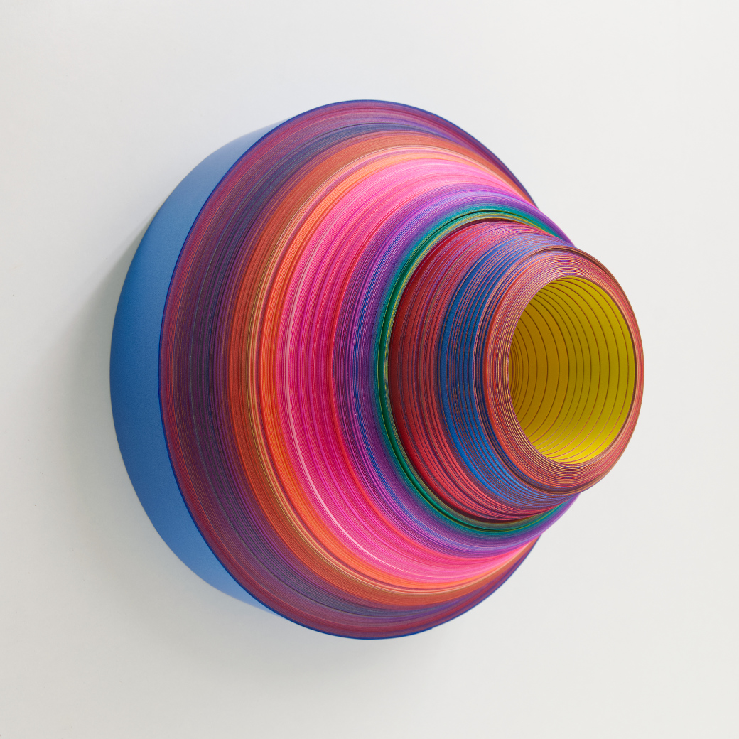 Coil_2023_08_01 (D-Blue), 2023. Polypropylenbänder gewickelt, Ø 238 mm, h 150 mm
