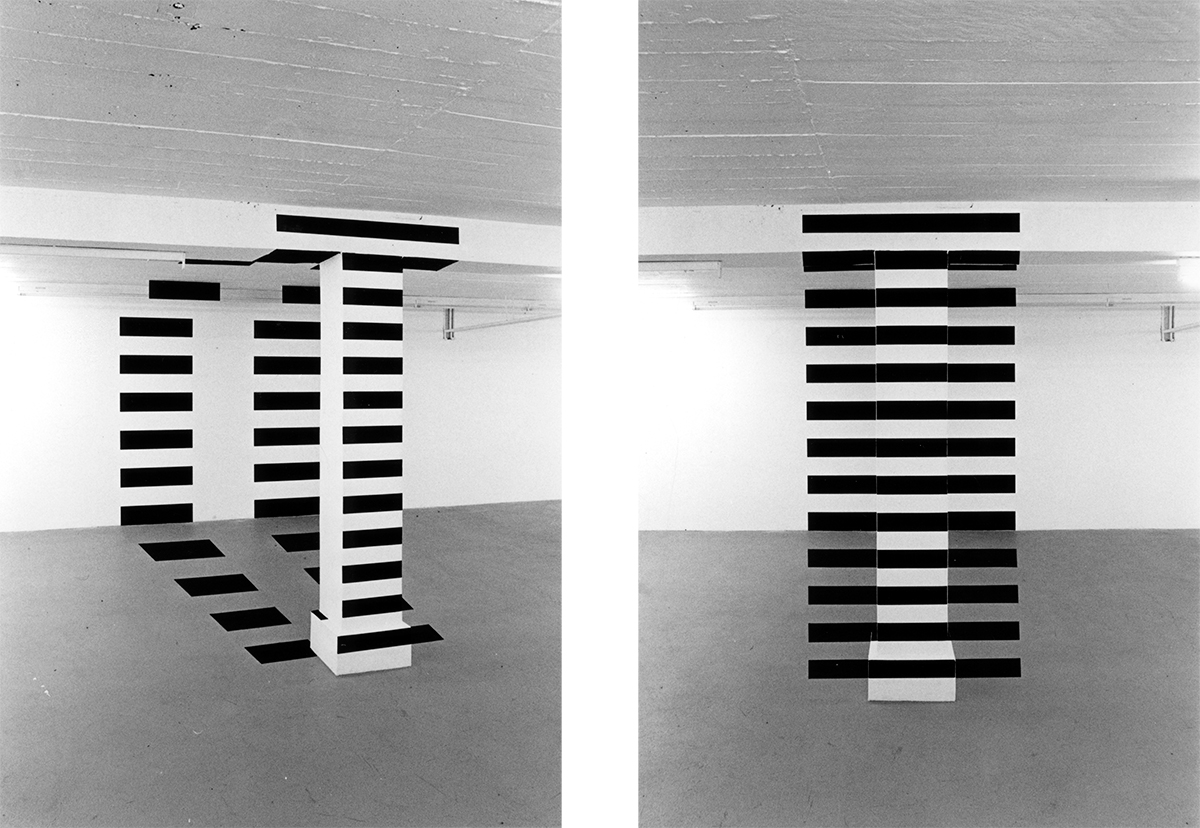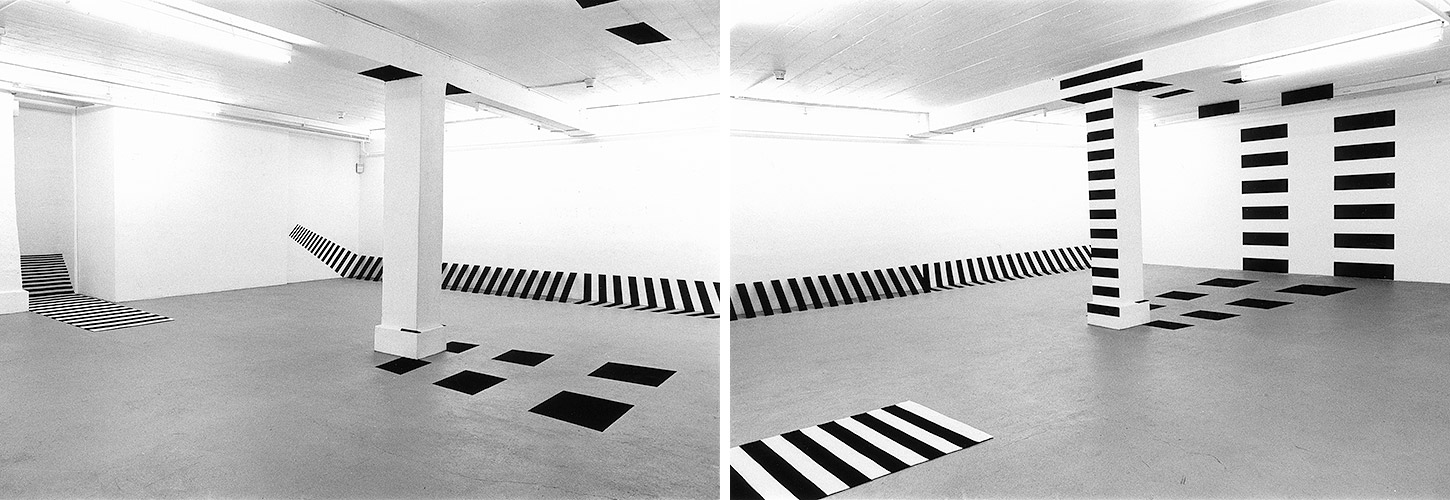 , Dispersion auf Wand, Holz und Papier, Wollteppich, Haus für konstruktive und konkrete Kunst Zürich, 1991