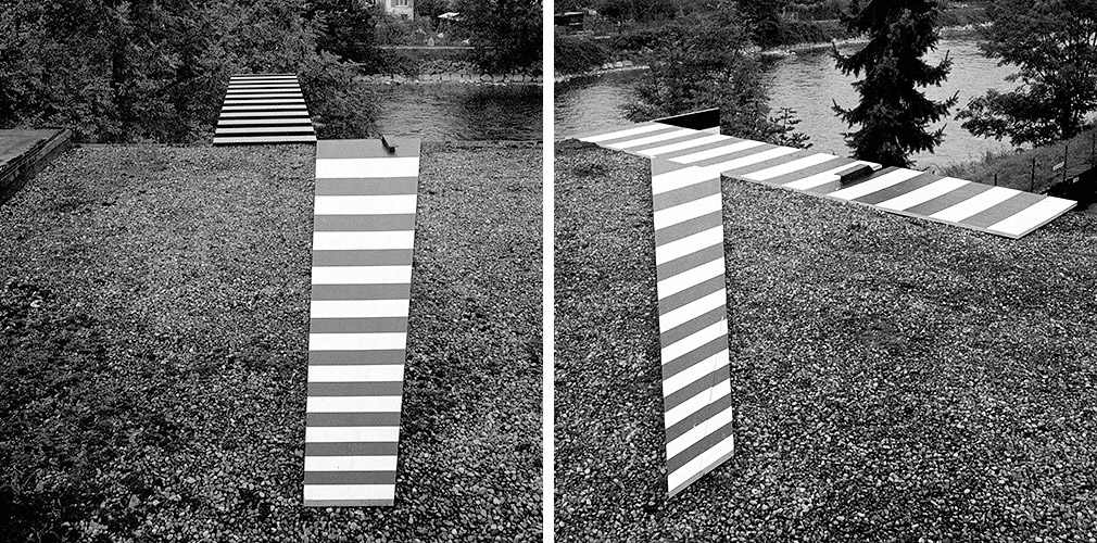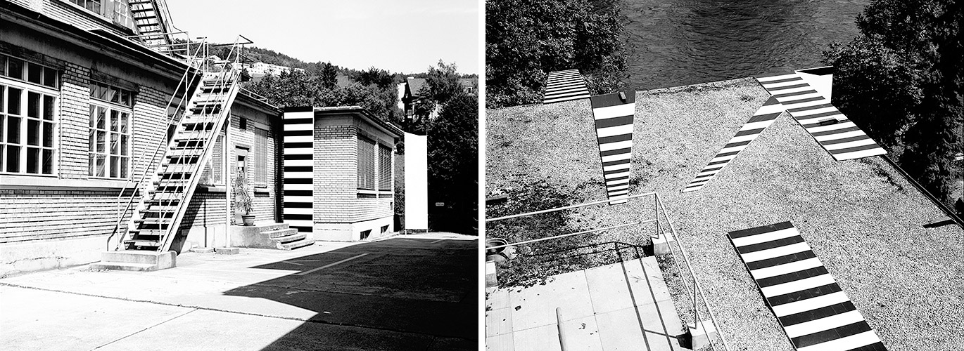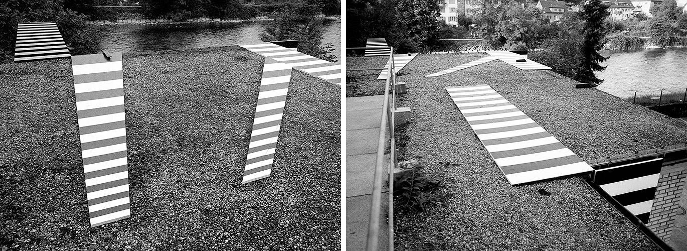 , Installation im Außenraum (Dispersion auf Holz), Galerie Mark Müller (Zürich), 1992