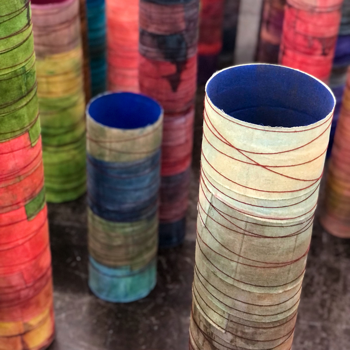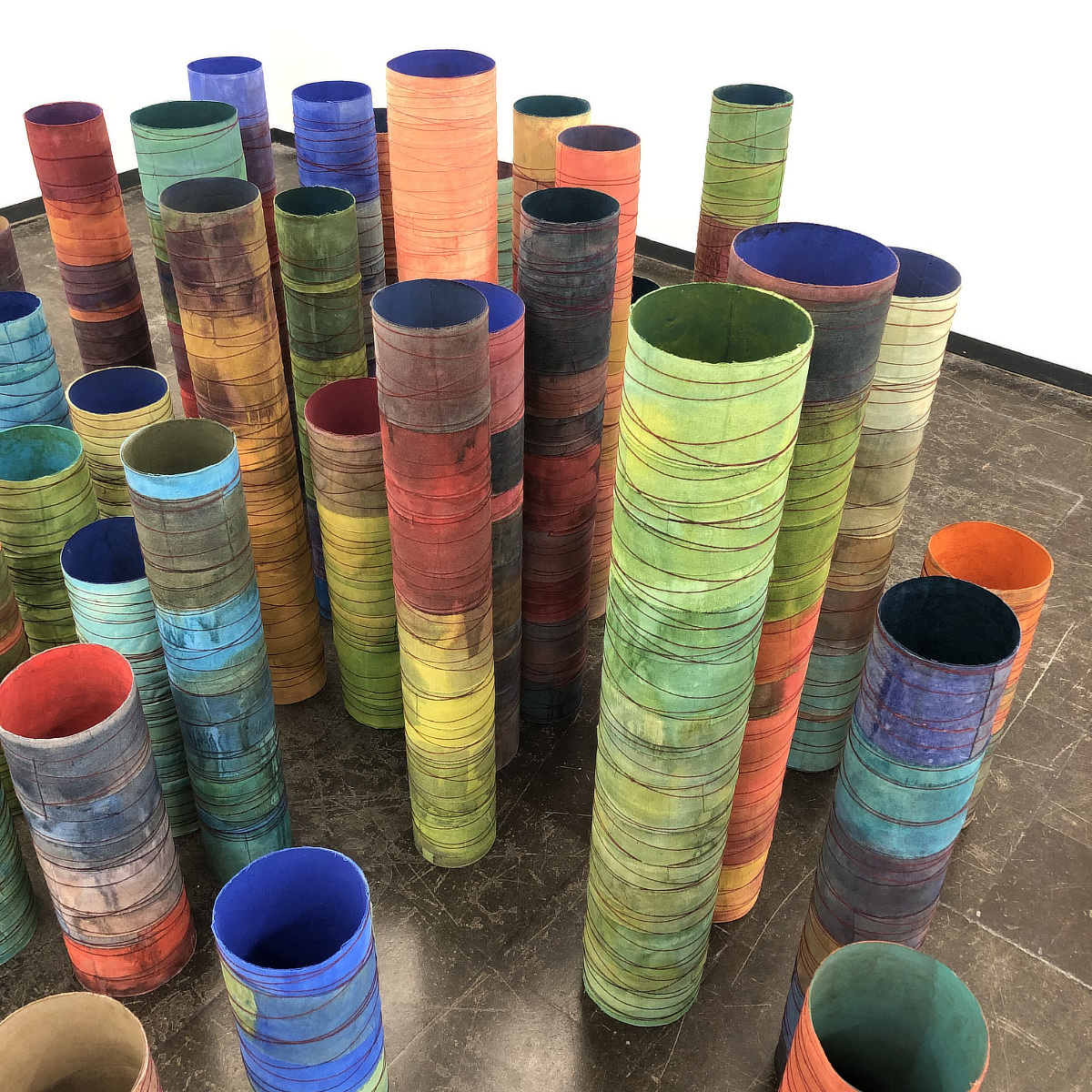 , 2021. Polymerdispersion auf Leinwand, Ø 13,5–16,5 cm, h 50–100 cm [in situ -t-e-x-t-i-l-e-, HAUNT Berlin, 2022]