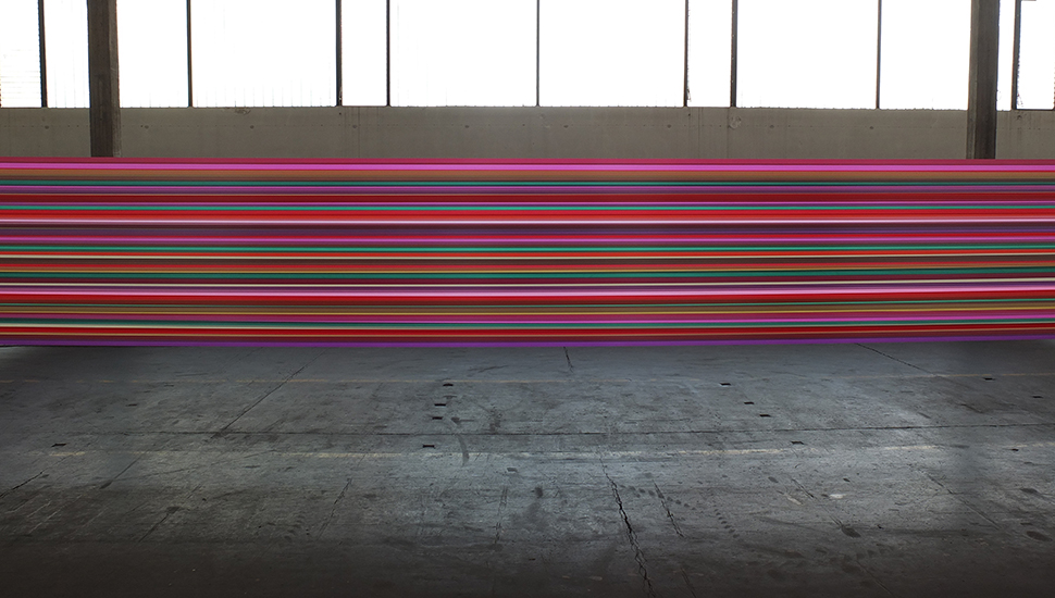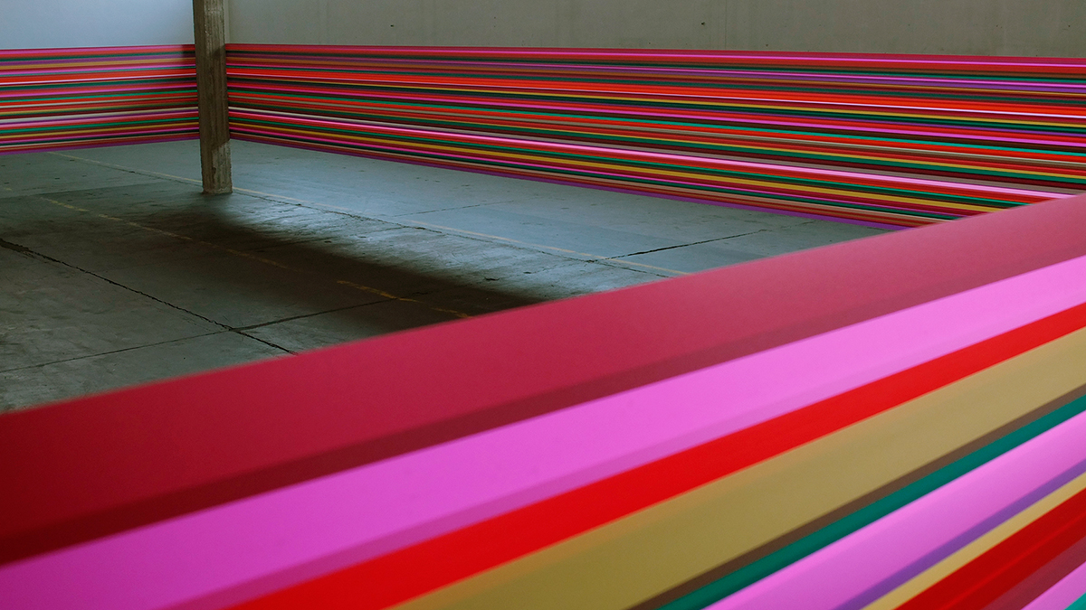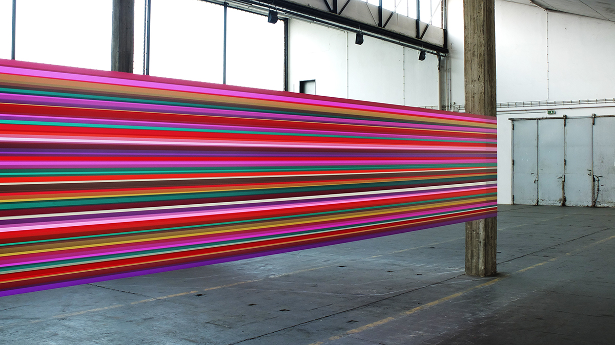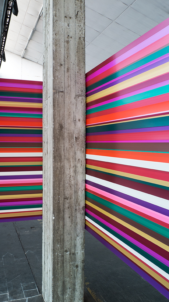 , Polypropylenbänder, 140x1600x865 cm, 2015 in situ: Kunst an der Grenze, Jennersdorf (Burgenland, AT), August 2015